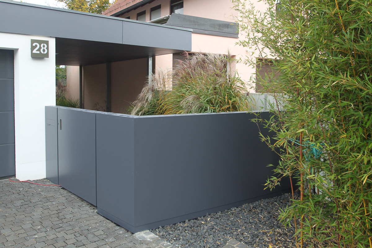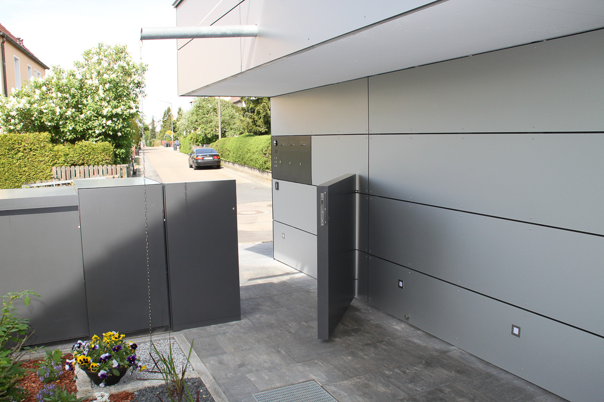 Gartentoranlage mit Schließanlage und Mülleinhausungen – GT53